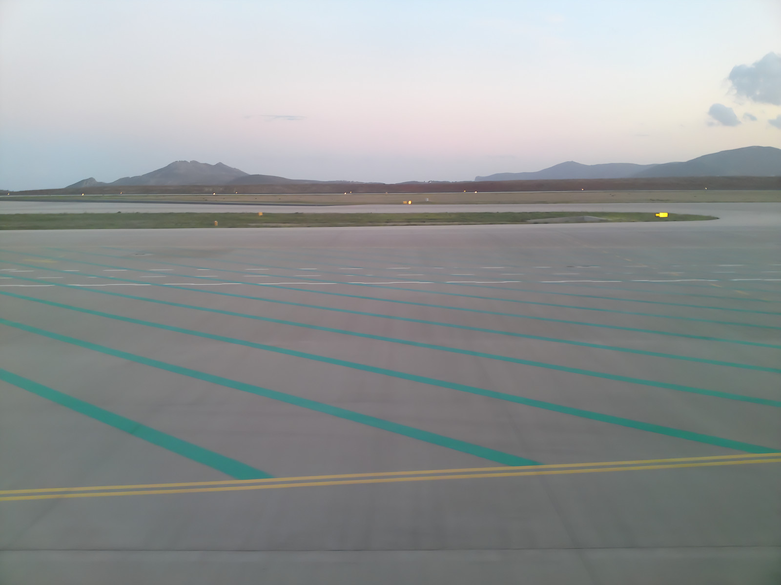 As you see it's such a sweet dusk with soft colours in the sky so I'm taking the chance for some shots while the plane taxis towards the runway: