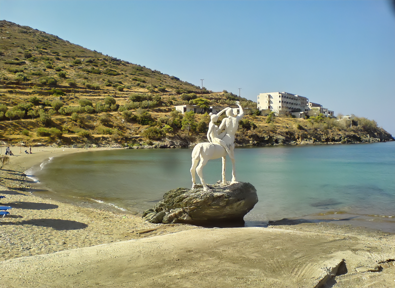 The city is nothing exciting and we're not here to spend our time in the city anyway so next day, surprise surprise, we start riding again. A few km SE of Karystos we make a stop at the seaside village of Bouros where the local centaurs statue, funny as it gets, gives as the chance for the following shots: